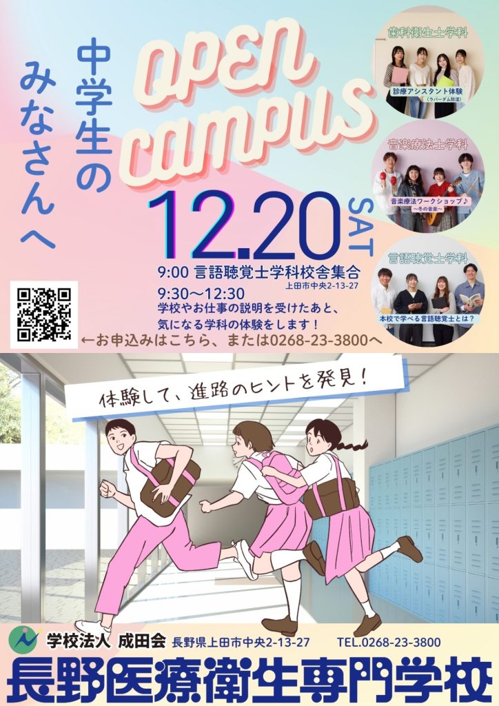 12月20日(土)今年度第8回目のオープンキャンパスは、中学生のみなさんも参加していただけます。